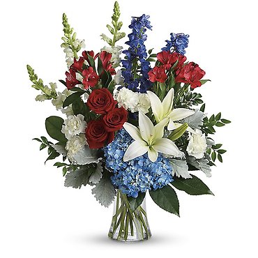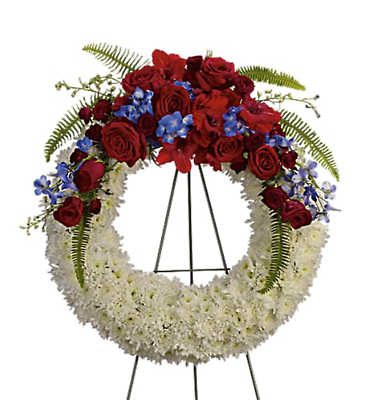 Celebrate a life of distinguished service with elegant, patriotic blooms. Carefully hand-made, this collection of seven sympathy pieces brings honor to your beloved's legacy. Distinguished Service Collection includes the following seven sympathy set pieces: